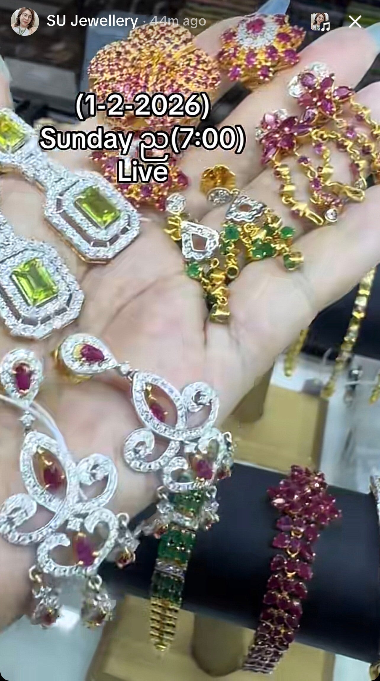 Don’t miss our live show! Every Sunday at 7:00 PM Myanmar time, we present a live show featuring the most beautiful jewellery and watches. This is your chance to get exclusive pieces at special prices. We’re happy to have you here and to share this exciting live shopping experience with you! ✨